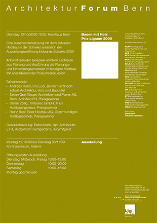 Eine Auseinandersetzung mit dem aktuellen Holzbau in der Schweiz anlässlich der Ausstellungseröffnung Holzpreis Schweiz 2009